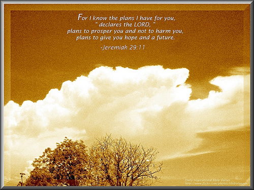 “‘For I know the plans I have for you,’ declares the Lord, ‘plans to prosper you and not to harm you, plans to give you hope and a future.’” Sounds pretty straightforward, right?